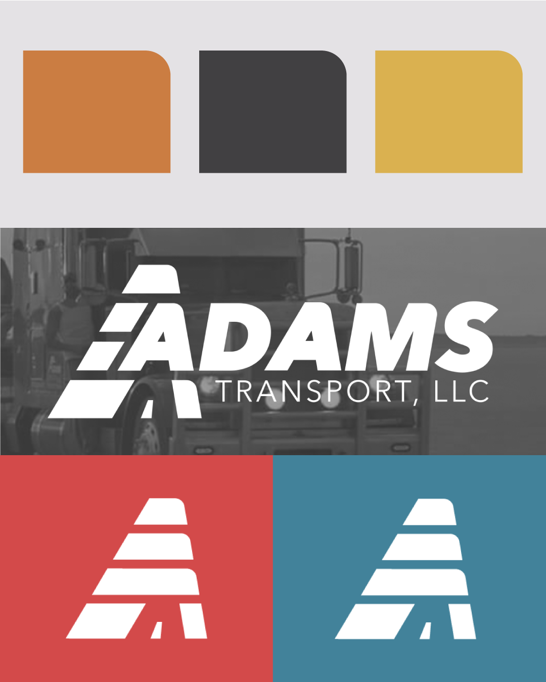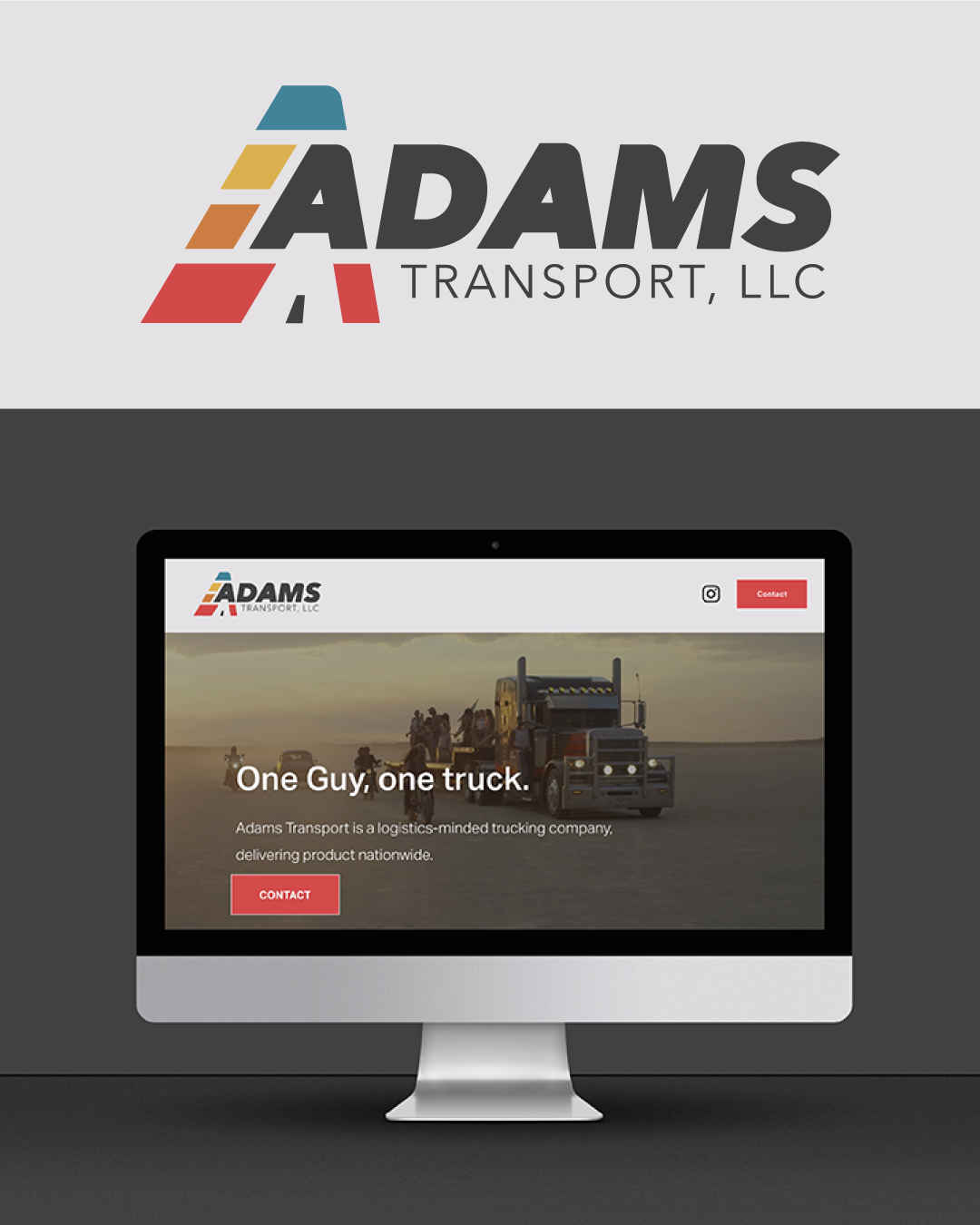 Brand redesign included a custom logo and color palette based on old-school, retro trucking aesthetics. I added a gradation of colors that mimic the sunset (or sunrise!)--as often seen from the driver's seat. Another fun detail worked in is the perspective of a highway road heading towards the horizon. We also carried over the concept and primary colors from his original logo and paint job on his truck, inspired by the Southern Pacific Railroad "bloody nose" locomotives.